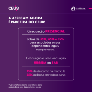 Fundada em 5 de maio de 2003, a Assecam nasceu com o intuito de proporcionar aos servidores, ex-servidores e pensionistas da Câmara Legislativa do DF, bem como suas para famílias, os melhores descontos nos mais variados seguimentos do mercado, a fim de lhes proporcionar um maior bem-estar, com base na credibilidade, operando em uma vasta rede de atendimento através de vários convênios como: Postos de combustível, faculdades, clínicas, serviços jurídicos e várias outras atividades comerciais em todo o DF.